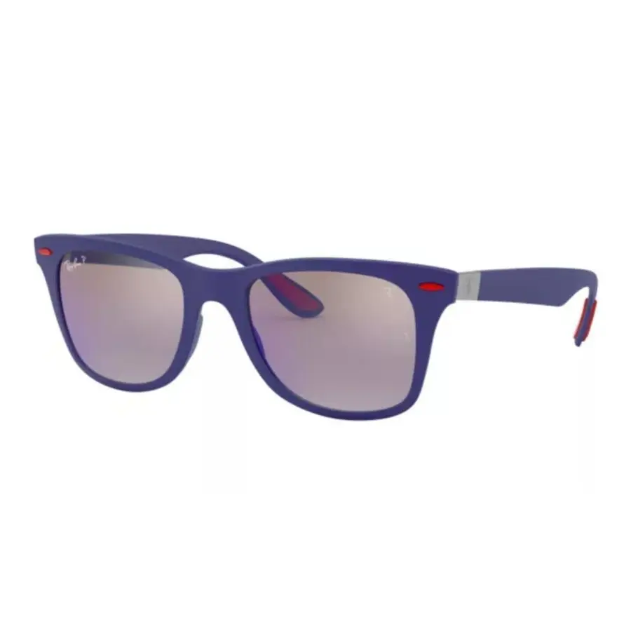 LENTES FERRARI WAYFARER LITEFORCE AZUL ESPEJADO POLARIZADO PATILLA PUNTA ROJA