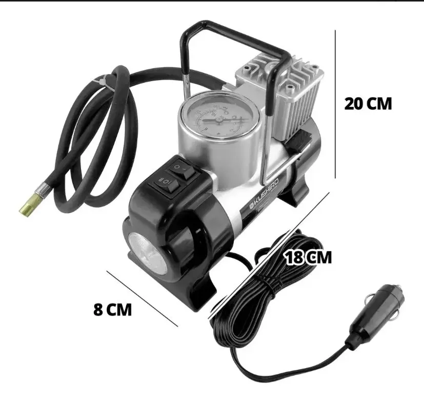 Mantené tus neumáticos y accesorios siempre listos con este compresor de alto rendimiento. Su voltaje DC 12V y potencia aproximada de 120W garantizan un inflado rápido y eficiente. ⚡🚗
