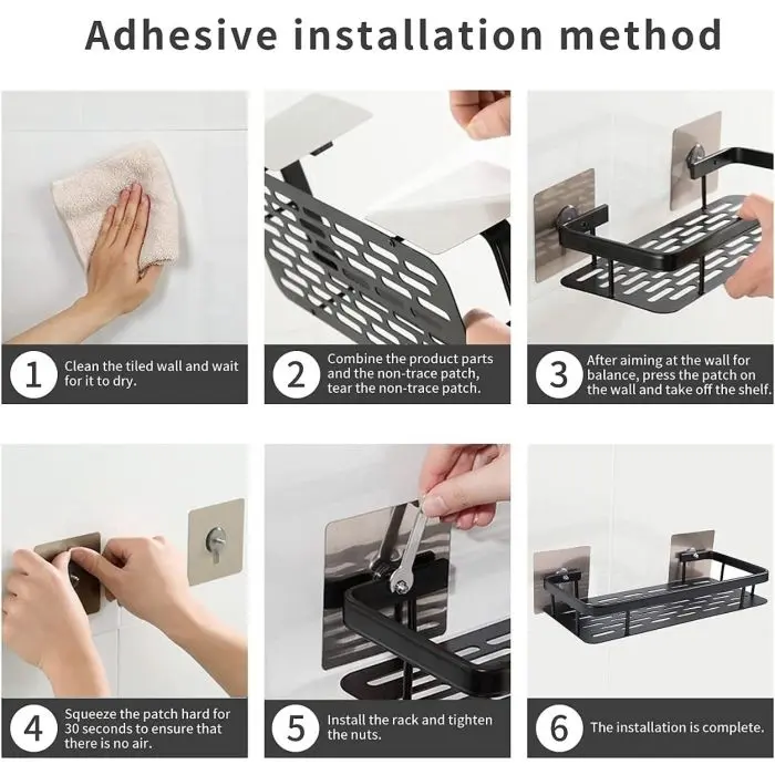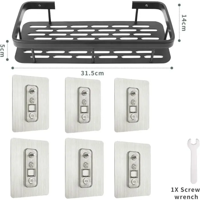 Maximizá el espacio en tu baño de manera elegante y práctica con este estante negro autoadhesivo. Perfecto para mantener shampoo, acondicionadores y otros productos al alcance de la mano, sin necesidad de perforar la pared.