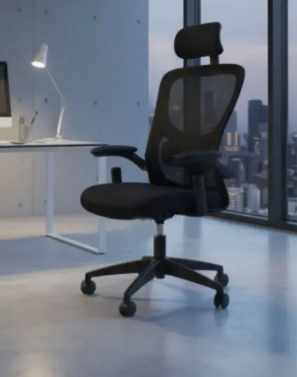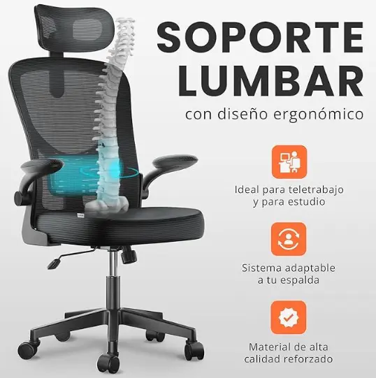 Esta silla de oficina ergonómica incluye soporte de cabeza que ayuda a reducir la tensión cervical y mejora la postura durante largas horas de trabajo.